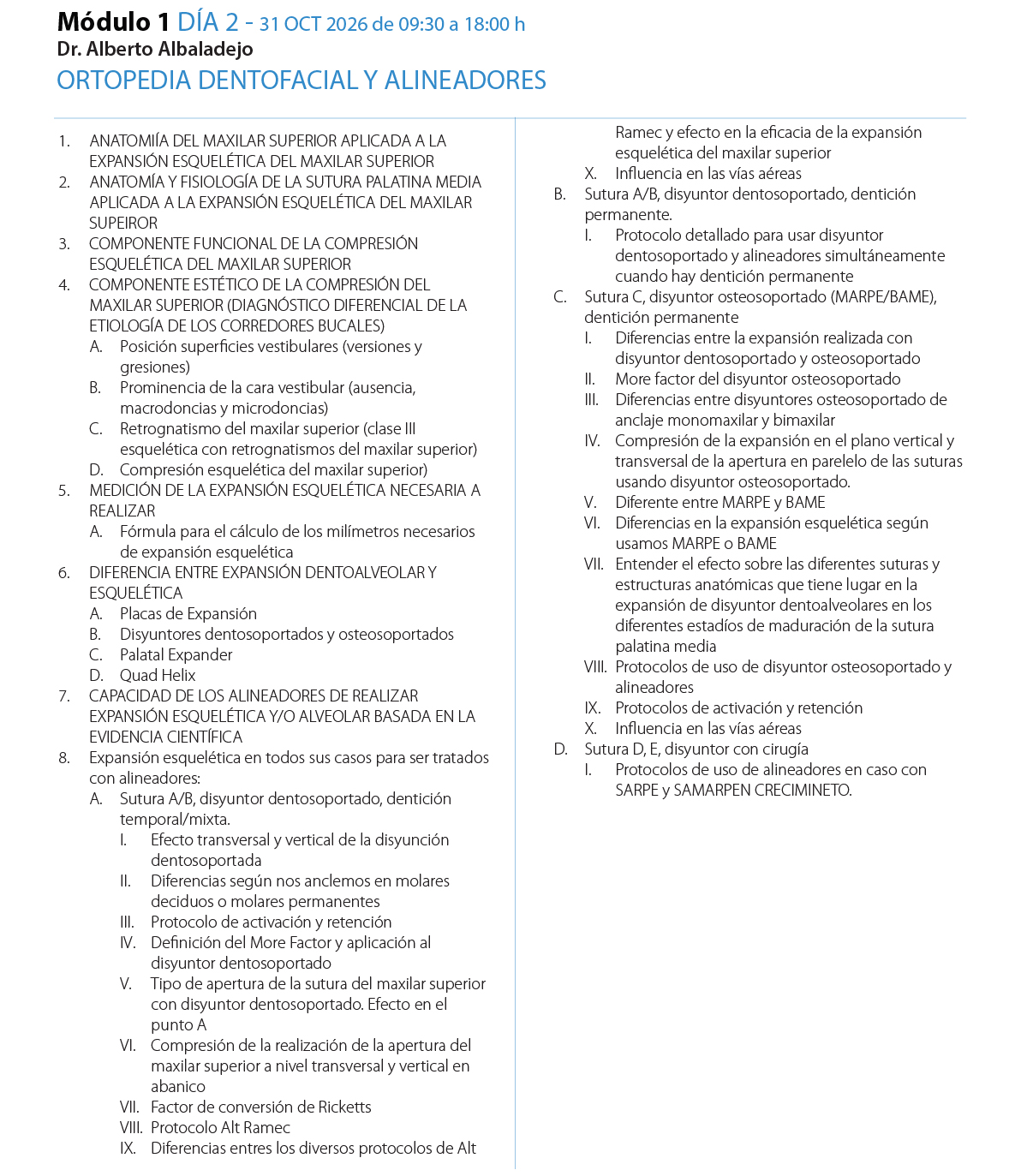 • Ortodoncia con alineadores y cómo hibridar en la selección de casos adecuados son cada vez más necesarios.