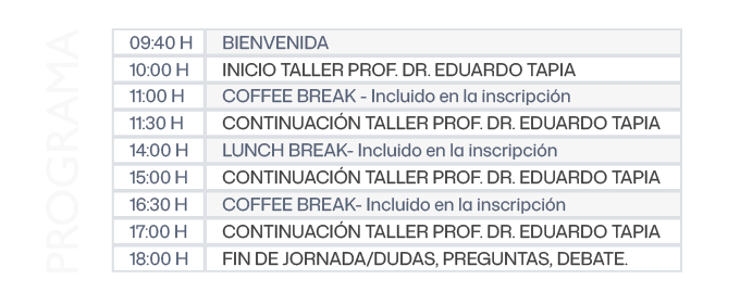 La inscripción incluye asistencia, material didáctico, talleres, materiales para prácticas, coffee breaks, almuerzo, así como todo lo necesario para el correcto desarrollo del curso. Para cancelaciones no se devolverá el importe del curso habiendo quedado esa plaza bloqueada a otros asistentes.